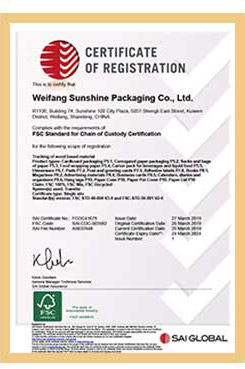 Established in 1997 and Located in Weifang City, the world kite capital, close to Qingdao port, Sunshine has been offering various customized packaging solutions for bakery, takeaway food, flowers, supermarkets and many other industries for over 20 years. We specialize in cardboard boxes, corrugated boxes, paper bags, paper cards and labels. Our factory has 380 staff with rich experience, including the Research and Design team. With total assets of more than 200 million yuan, our factory covers an area of 40 thousand square meters and has been equipped with a complete set of world class machines exclusive for printing and packaging, such as Mitsubishi folio offset press, Bobst gluing machine, fully automatic hot foil stamping machines, die cutting machines, and window pasting machines.